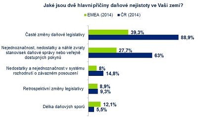Hlavní příčiny daňové nejistoty v ČR a v dalších zemích EMEA