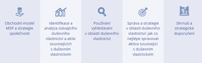 Zpráva odborníka na duševní vlastnictví (IP Scan) tedy zahrnuje pět hlavních témat: