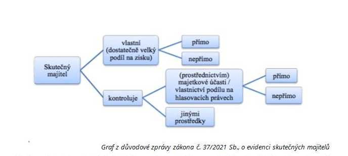 Zákon přináší v prvé řadě určité zpřesnění vymezení skutečného majitele. Obecně platí, že skutečným majitelem je každá fyzická osoba, která je koncovým příjemcem nebo osobou s koncovým vlivem [§ 2 písm. e)]. Koncovým příjemcem je osoba, která může mít přímo nebo nepřímo prostřednictvím jiné osoby nebo právního uspořádání (tím se rozumí svěřenský fond) podstatnou část z celkového majetkového prospěchu tvořeného při činnosti nebo likvidaci právnické osoby nebo tvořeného při správě nebo zániku právního uspořádání (dále jen „prospěch“), a tento prospěch dále nepředává. Osobou s koncovým vlivem je pak osoba, která může bez pokynů jiného přímo nebo nepřímo uplatňovat rozhodující vliv v právnické osobě nebo na správu právního uspořádání. Zůstává přitom zachována hranice 25 % na rozdělovaném prospěchu a 25 % na hlasovacích právech - ať už přímo nebo nepřímo.