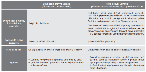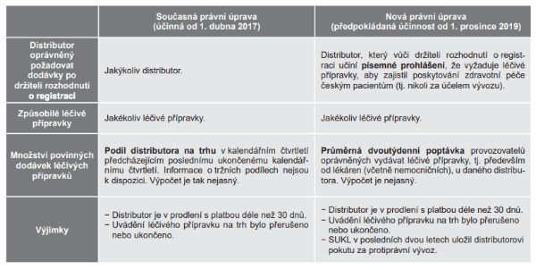 Novela do značné míry navazuje na dosavadní úpravu povinností držitele rozhodnutí o registraci a distributora v oblasti zajištění dodávek léčivých přípravků v rámci distribučního řetězce, která byla zavedena v dubnu 2017.