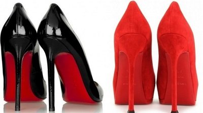 Porovnání bot Christian Louboutin (vlevo) a Yves Saint Laurent (vpravo)[1]
