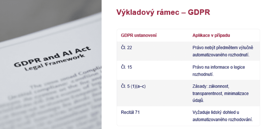 V GDPR máme spoustu ustanovení, včetně Recitálu, která říkají, že je potřeba lidský dohled, není možné být předmětem výlučně automatizovaného rozhodování.