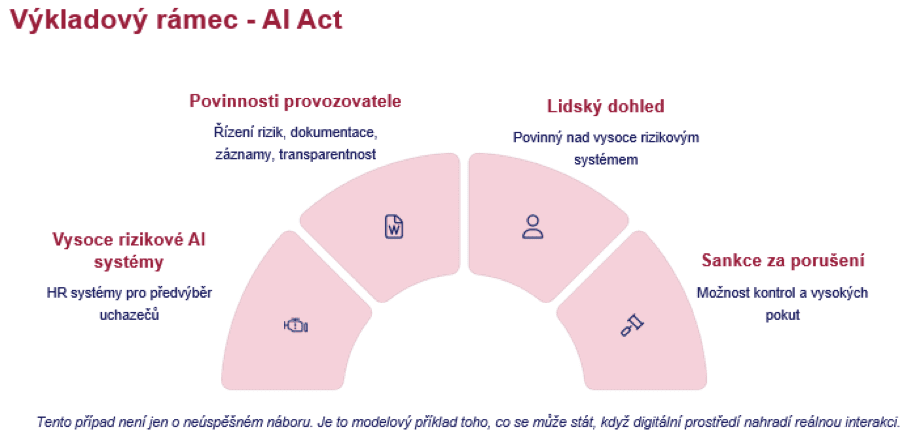 To, co možná je a bude do budoucna určitě v těch sporech zajímavé, protože věřím, že se povedou spory, které budou třeba o diskriminaci kandidátů na zaměstnání, diskriminaci žadatelů o úvěry v těch scénářích, které jsou uvedené v příloze III AI Actu, jako takzvané vysoce rizikové systémy umělé inteligence, tak tam jsou popsané v rozpadu do různých oblastí.