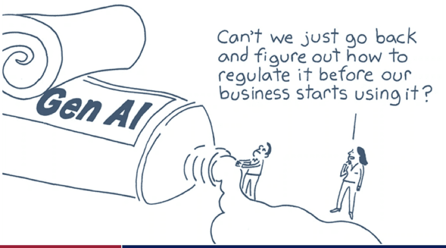 A vlastně posledním obrázkem dělám oslí můstek na to, že generativní umělá inteligence nebo umělá inteligence jako fenomén už prostě dávno z té tuby vytekl a my ho tam nemůžeme dát zpátky a nemůžeme si teď tady přemýšlet nad tím, jak ho budeme regulovat, ale musíme s ním pracovat. I proto je tady urgence nejenom ode mě, ale v podstatě na celém trhu, která zaznívá naprosto jasně: je potřeba s tím opravdu začít pracovat a nesmíte na nic čekat. Je to jenom na vás. Musíte být odvážní a zvídaví.