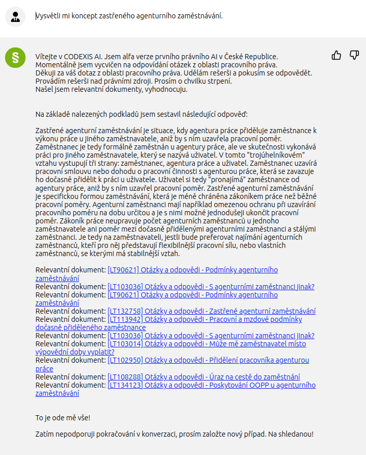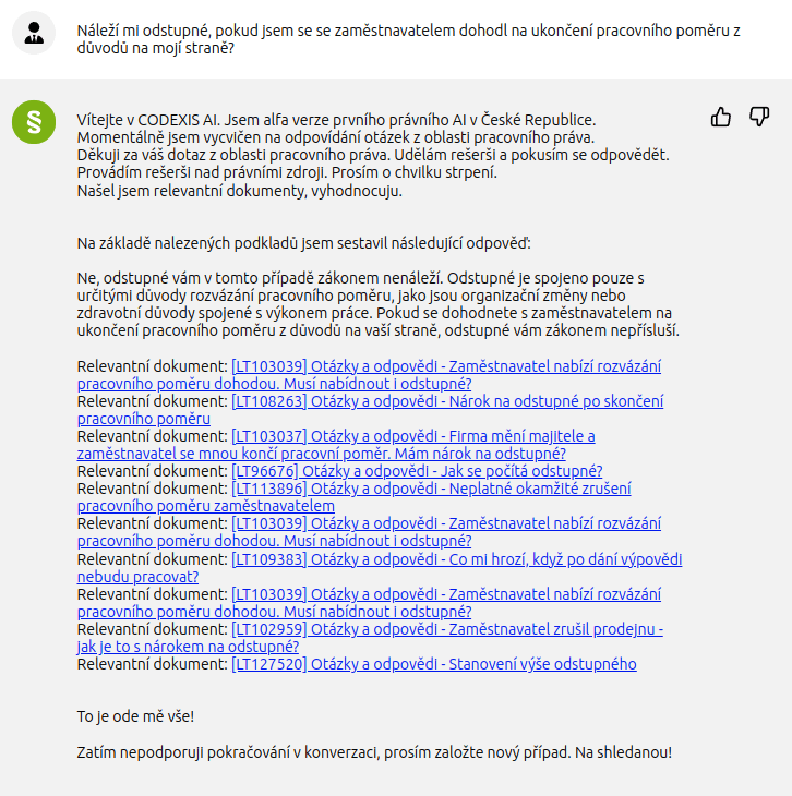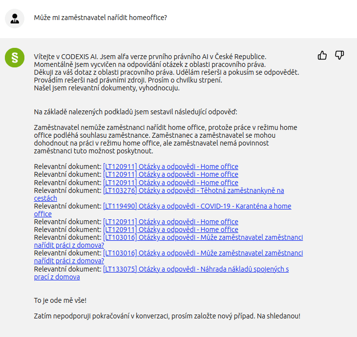CODEXIS AI je momentálně v neveřejné testovací alfa verzi. Vývojové oddělení právního informačního systému CODEXIS a vybraná odborná veřejnost ze stran advokátů a doménových odborníků jej testuje.