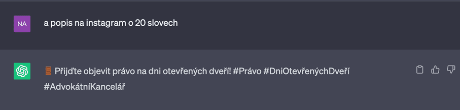 Pokud chcete krátký popisek k fotce na Instagramu, stačí napsat a máte jej včetně hashtagů #Právo a #AdvokátníKancelář.