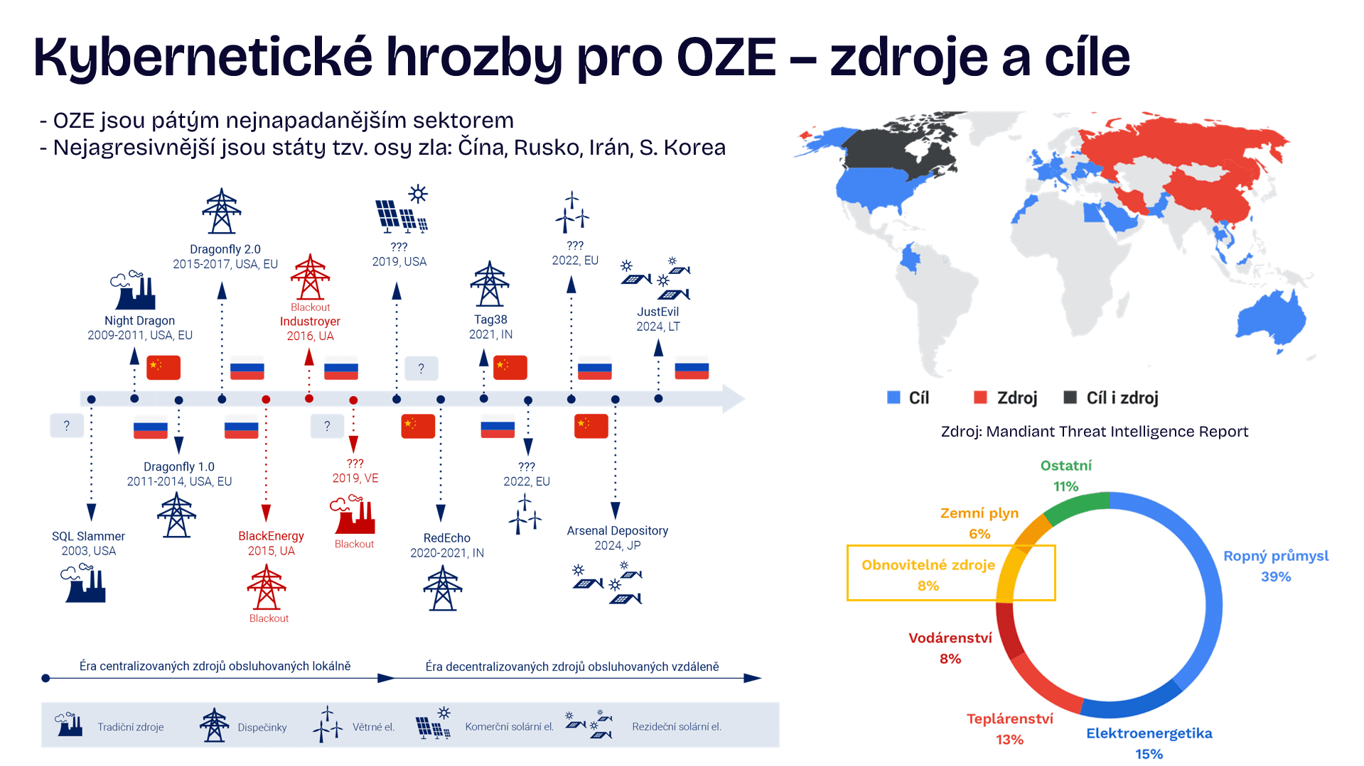 To, že se obnovitelné zdroje energie se rychle stávají atraktivním cílem kybernetických útoků po celém světě potvrdila bezpečnostní výzkumnice ČVUT Erika Langerová vedoucí týmu Kyberbezpečnost pro energetiku v Univerzitním centru energeticky efektivních budov. Podle analýz společnosti Mandiant jsou obnovitelné zdroje pátým nejnapadanějším sektorem v energetice, přičemž hlavními agresory jsou státní aktéři z Ruska a Číny.