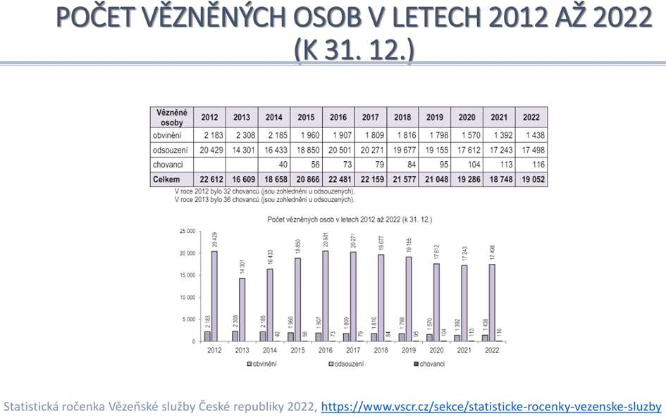 Zároveň další tabulka ukazuje počet vězněných osob v letech zhruba od roku 2012.