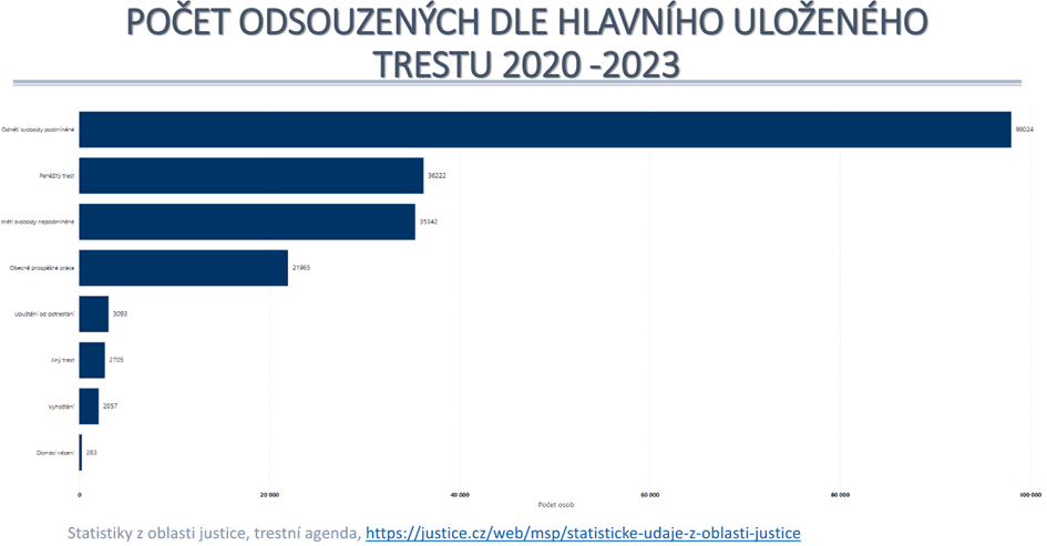 Protože nejvíc trestů, které ukládají české soudy, jsou tresty podmíněné, pak peněžité a vlastně výrazně nižší procento tvoří nepodmíněné tresty odnětí svobody, k nimž se postupně přibližuje trest obecně prospěšných prací. Samozřejmě trest vyhoštění je dneska z hlediska funkčnosti velmi omezen tím, že v rámci občanů Schengenu Evropské unie je možnost uložení takového trestu velmi omezená jenom na zvlášť závažnou trestnou činnost.