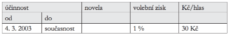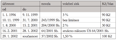 Tab. 1: Příspěvek na úhradu volebních nákladů do Poslanecké sněmovny