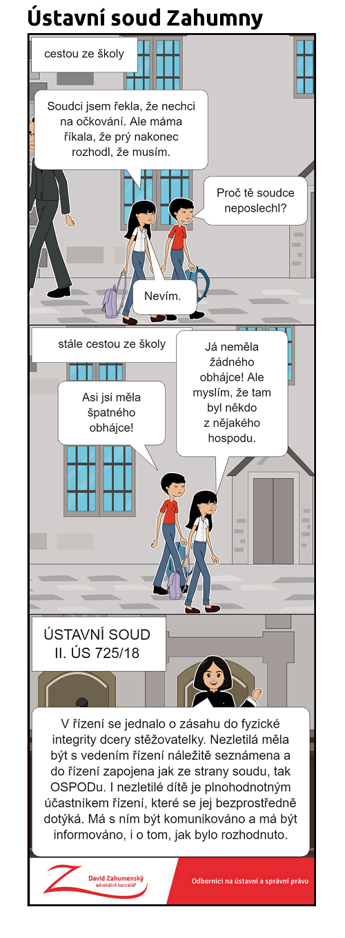 Nezletilé dítě je plnohodnotným účastníkem řízení, které se jej bezprostředně dotýká. Má tedy právo být důležitým aktérem řízení, nikoli jen objektem ochrany či pasivním pozorovatelem rozhodování o své záležitosti. Právo dítěte být slyšeno v řízení, které se jej týká, zaručené čl. 12 Úmluvy o právech dítěte, se neomezuje na pouhé zjištění názoru dítěte na projednávanou záležitost, dítě nemůže být vnímáno jen jako zdroj informací. Naopak zahrnuje další komunikaci s dítětem a informování jej o řízení, včetně toho, jak nakonec bylo rozhodnuto v jeho záležitosti a jak byl zohledněn jeho názor, pokud jej dítě vyjádřilo. Za dodržení tohoto práva přitom odpovídá soud. Pokud je dítě způsobilé k tomu, aby v řízení bylo vyslechnuto přímo soudem, a neodporuje to ani jeho nejlepšímu zájmu, pak by to měl být také přímo soud, kdo dítěti své rozhodnutí přístupnou formou vysvětlí. Takové informování dítěte přímo soudem jako nestrannou a neutrální autoritou je zcela zásadní tam, kde rodiče dítěte či jiné osoby mu blízké vystupují v soudním řízení proti sobě, a proto poté ani nemusí být schopni dítě nezkresleně informovat o průběhu a výsledku řízení.