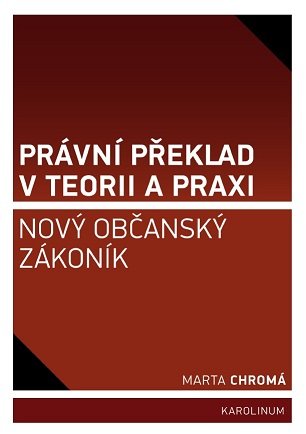 V půlce prosince vydá nakladatelství Karolinum knihu Právní překlad v teorii a praxi, jejíž autorkou je PhDr. Marta Chromá, Ph.D. Hlavním cílem publikace je poskytnout čtenářům nejen teoreticky podložený návod, jak postupovat při převádění právních informací z češtiny do angličtiny, ale také praktické ukázky přístupu k překládání nového občanského zákoníku (NOZ).