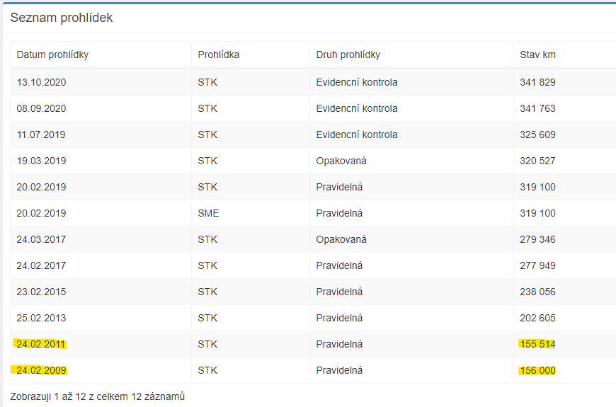 Shora uvedené údaje zjevně svědčí o tom, že s tachometrem není něco v pořádku, když během dvou let vozidlo najelo mínus 486 kilometrů, tedy existuje podezření, že je stočený.