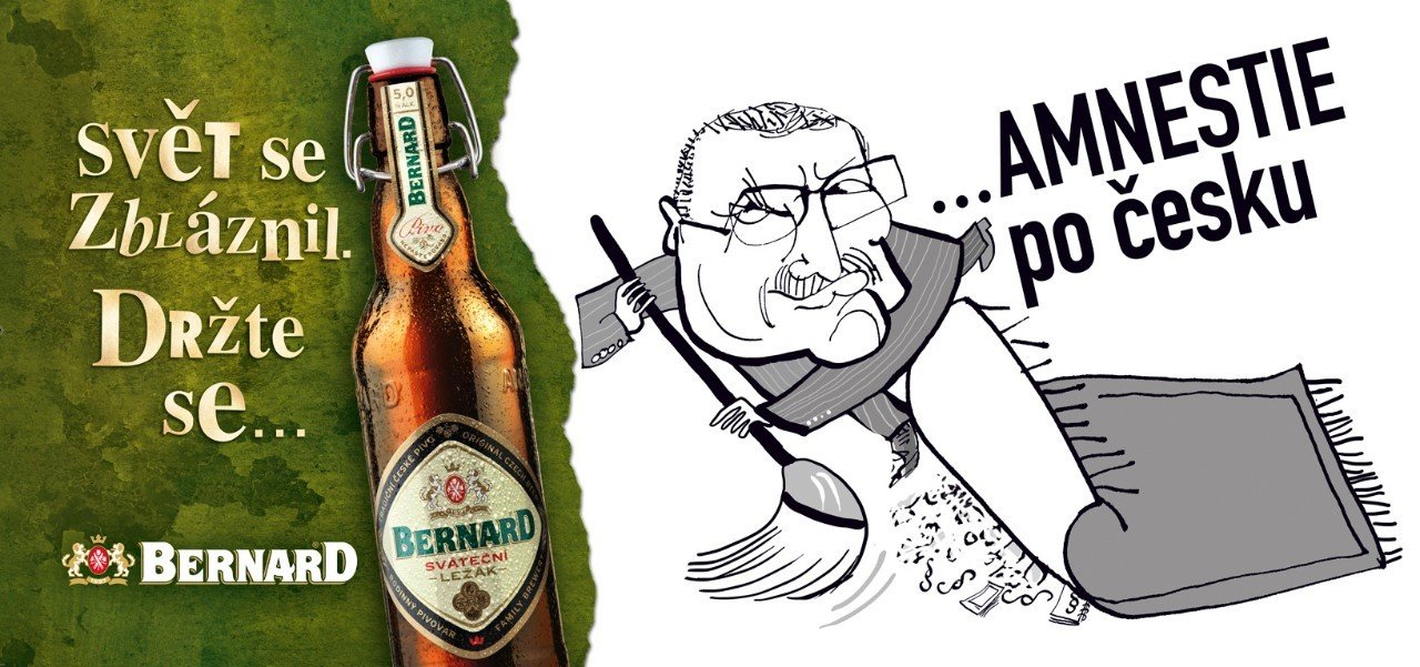 Bernard tehdy ve svém vyjádření ke stížnosti uvedl, že cílem kampaně nebylo v žádném případě zneužít podobizny prezidenta republiky; záměrem bylo poukázat na zneužití funkce a sporného rozhodnutí o udělení amnestie panem Václavem Klausem. Nebylo mu to ovšem nic platné, Kodex reklamy, přesněji jeho čl. 6.2 vedl Arbitrážní komisi Rady pro reklamu k závěru (srov. rozhodnutí 006/2013/STÍŽ), že došlo k porušení Kodexu.