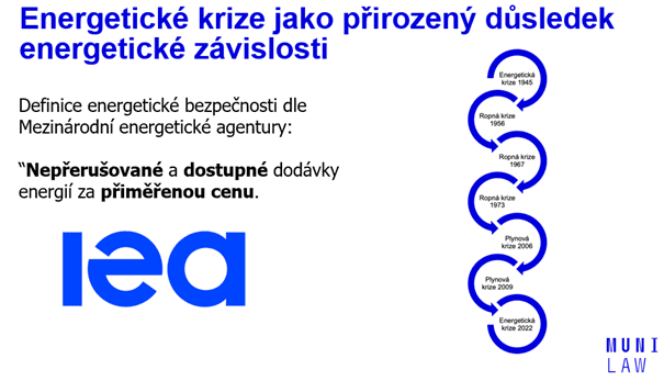 Energetické krize je dle mého názoru nezbytné vnímat jako přirozený důsledek energetické závislosti. Energetická krize 2022 tak není, ani první a s vysokou mírou pravděpodobnosti ani poslední krizí, které jsou členské státy EU vystaveny. Za pozitivní v tomto kontextu považuji zdůraznit, že členské státy EU, EU i mezinárodní společenství vždy vyšly z energetických krizí posíleny, jelikož právě krize vedly k vytvoření nových, anebo ke zlepšení již existujících právních rámců, které mají vzniku energetických krizí předcházet, nebo eliminovat jejich negativní důsledky pro společnost a průmysl, nepodaří-li se krizím předejít.