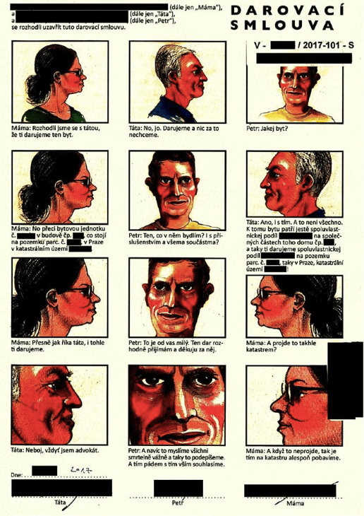 Mohly by dle vašeho názoru komiksy najít např. nějaké využití i při procesu uzavírání smluv? Jak se jako zkušení odborníci díváte kupříkladu na tento „právně-umělecký“ pokus o darovací smlouvu?