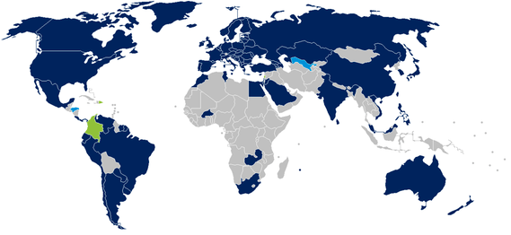 Tmavě modré státy jsou členy Haagské úmluvy, která upravuje možnosti navrácení protiprávně přemístěných či zadržených dětí do místa jejich obvyklého bydliště.